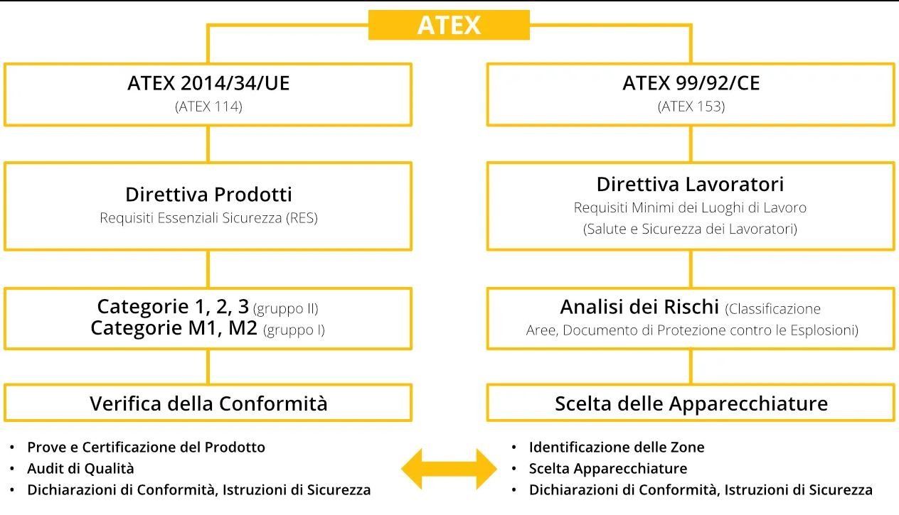 Come abbiamo accennato prima, questa normativa è stata ritenuta necessaria per rendere sicuri tutti quei prodotti, ossia tutte quelle apparecchiature e impianti elettrici, che avrebbero dovuto funzionare in ambienti industriali in cui il rischio di esplosione sarebbe stato parecchio elevato. In una specifica sezione, inoltre, vengono indicati tutti i parametri e le procedure per verificare se l’impianto interessato sia effettivamente conforme alle normative CE. Ovviamente tali procedure e parametri hanno diversa valenza rispetto all’ambiente in cui il nostro impianto si trova e rispetto a quale sia il suo intero compito all’interno dell’industria stessa.